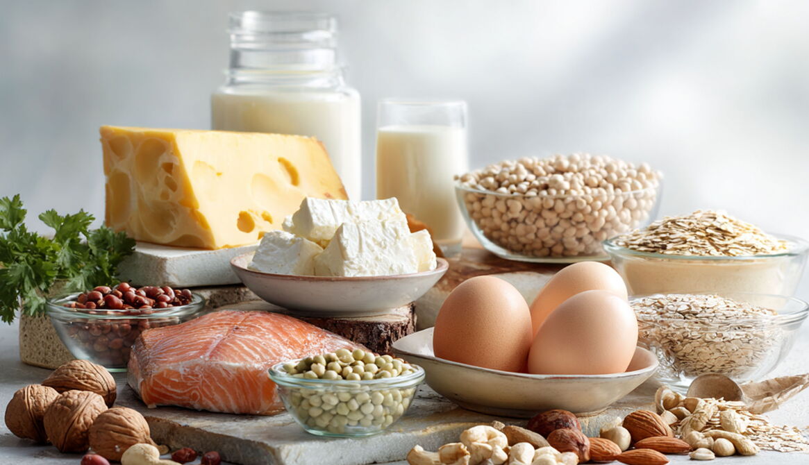 Käse & Milchprodukte liefern je nach Produkt unterschiedliche Mengen: Quark etwa 12–14 g Protein pro 100 g, Skyr etwa 10–11 g, Joghurt rund 4–6 g. Besonders gut kombinierbar mit Nüssen, Samen oder Obst vom Markt.